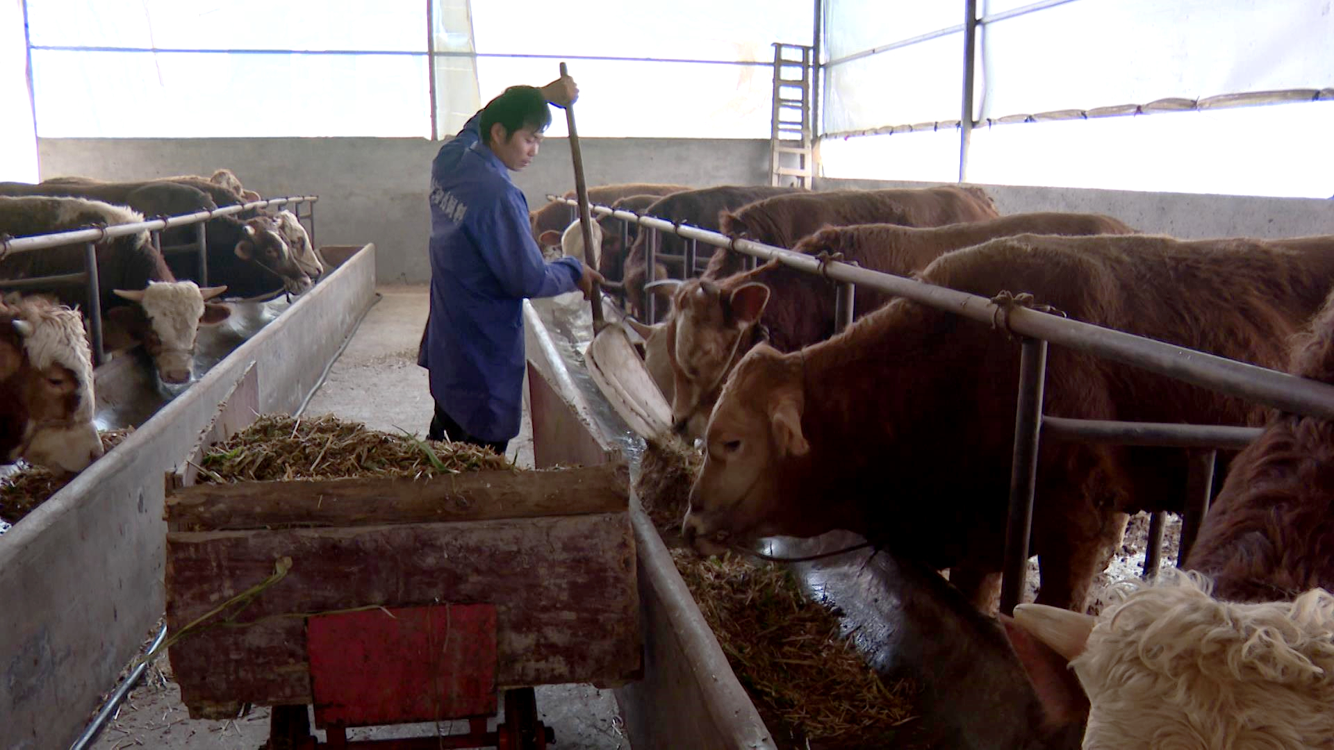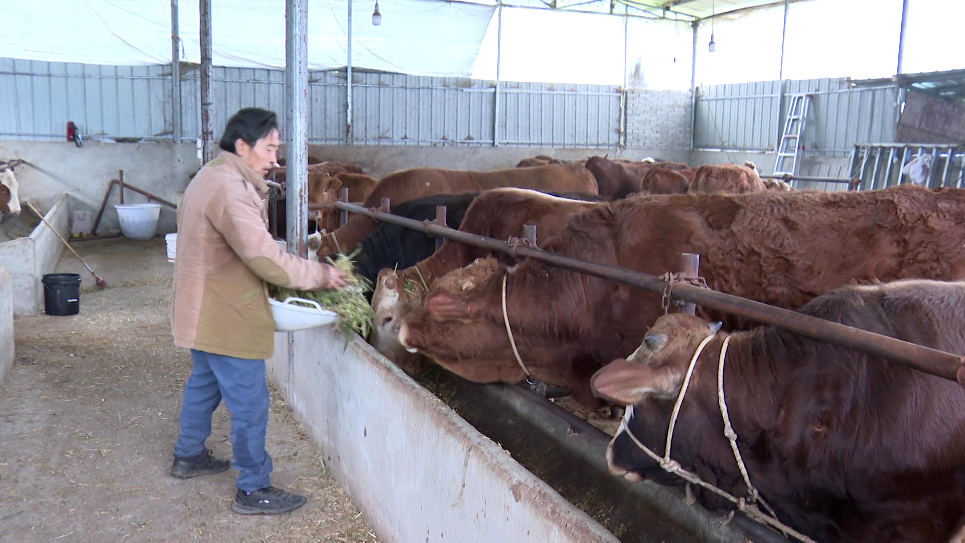 在联络村三组,村民郑卫龙每天都在自家牛棚里与家人们一起忙活着打扫卫生、添草加料饲养肉牛。据了解,2014年,郑卫龙开始肉牛养殖,从最开始10头牛发展到现在成为联络村最大的肉牛养殖户,腰包也一天天鼓了起来。