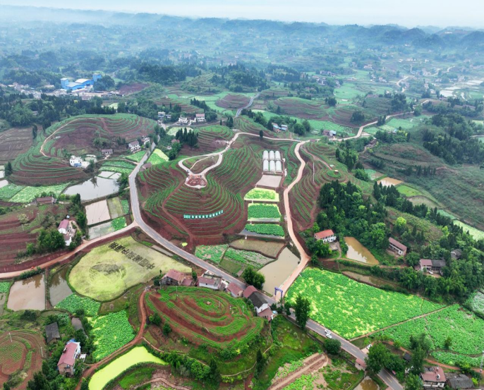 园区按照“三园一区两线两环”的规划进行建设。三园是按照功能需要和地理位置划分,以实现资源跨村集聚、有机融合的“标准化生产示范园”“三产融合示范园”和“大地艺术创意园”,三大功能园计划两年分三期建成。一区为提升改造区,该区域将在水田稻渔共生(稻虾)市级现代农业园区基础上,开展旱地高粱种植,促进稻渔与酿酒专用粮产业互补,凸显园区规模效应。两线为横穿园区中心、纵贯翠屏北域、连接自贡宜宾两市的老自宜路和新G247线,交通优势明显。两环为大小两条产业环线,按照产业发展需要建设与两线有机交互的交通连接道,实现园区点位全面覆盖和园区内外互联互通的产业交通布局。