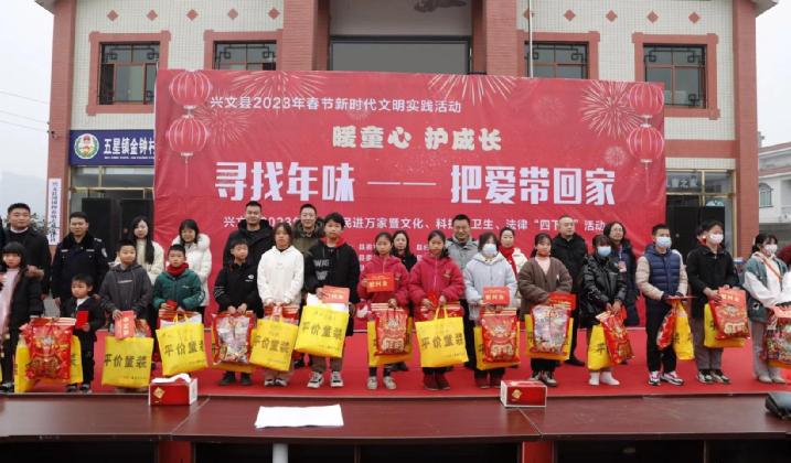 四川新闻网消息 兴文县五星镇为切实做好今冬明春儿童关爱服务及保障工作,2023年1月13日,“寻找年味——把爱带回家”2023年暖童心关爱服务活动在五星镇金钟村举行。