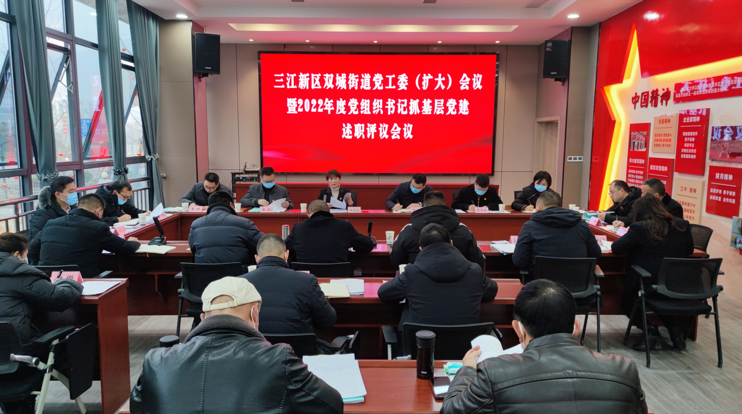 四川新闻网消息 近日,三江新区双城街道党工委(扩大)会议暨2022年度党组织书记抓基层党建述职评议会议在大学城社区戎创里·党群服务中心召开。街道党工委书记江化容主持会议并讲话,街道领导班子成员、督查督办组长、部门负责人、驻街单位负责人、各基层党组织书记参加会议。