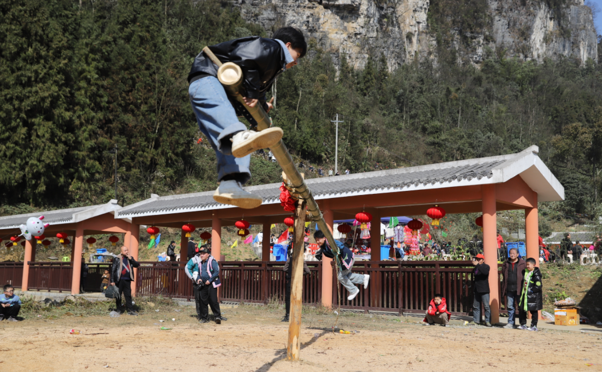 祭花杆仪式结束后,挤芦笙、跳竹竿舞等精彩活动相继开展,现场展示挑花刺绣技艺、特色美食等,吸引人们参与其中,体验苗族同胞的待客热情和独具特色的民族文化。