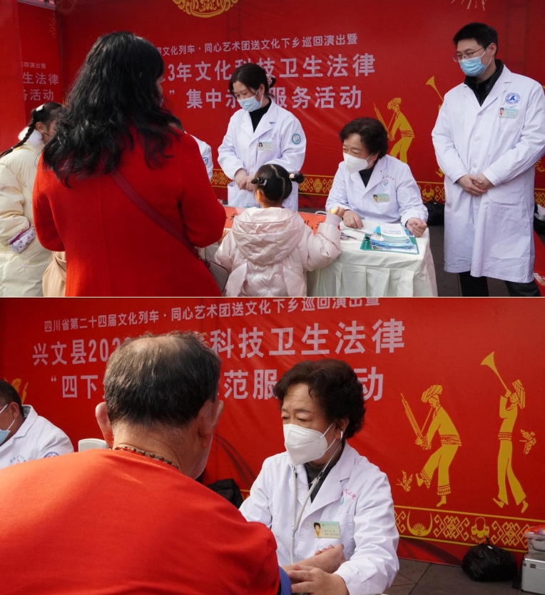 四川新闻网消息(周瑜原 魏丽雅)2023年2月1日,四川省第二十四届文化列车·同心艺术团送文化下乡巡回演出暨兴文县2023年文化科技卫生法律“四下乡”集中示范服务活动在市民广场举行。兴文县人民医院在县卫健局的带领下,组织该院内科、妇产科、儿科、急诊医学科等科室开展医疗义诊活动。