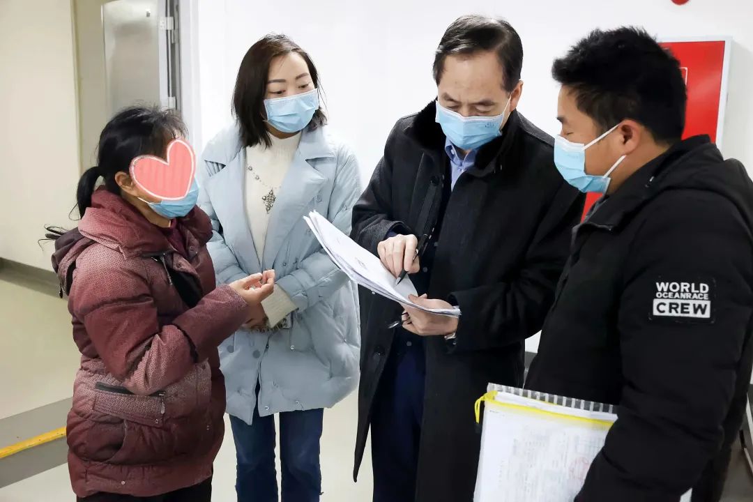 重医儿院医务处处长、主任医师李映良(左三)、发展部副主任郑薇霖(左二)为患者家属解疑答复