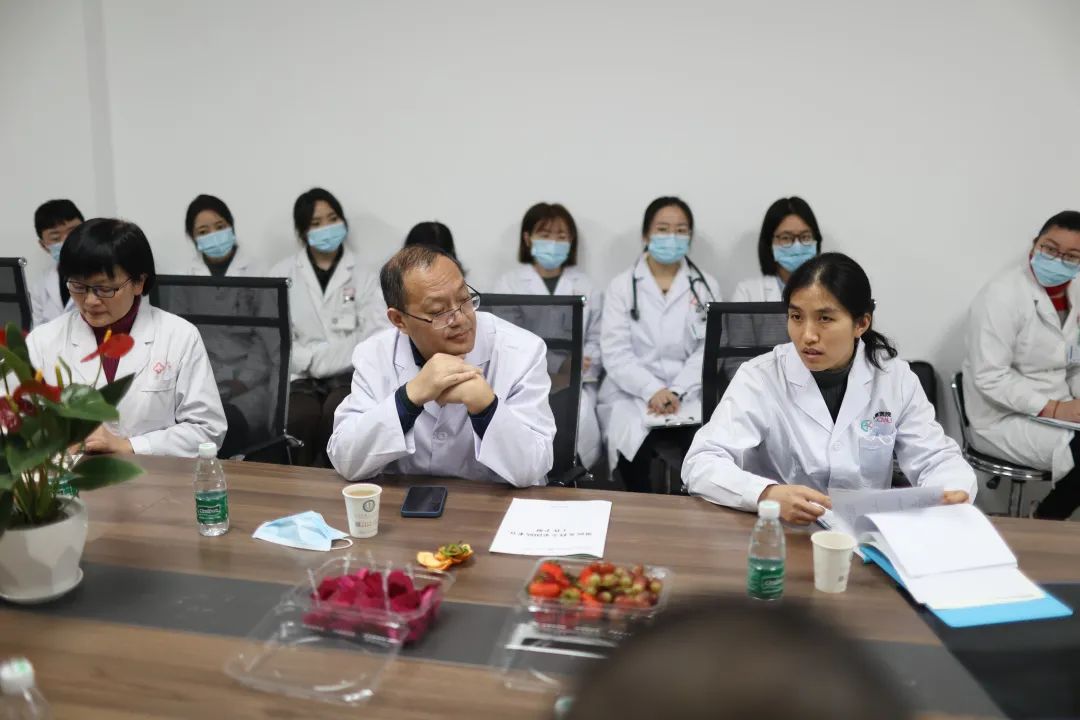 重医儿院重症医学科副主任、主任医师刘成军(前排中),呼吸科副主任医师张明香(前排右一)进行病例讨论