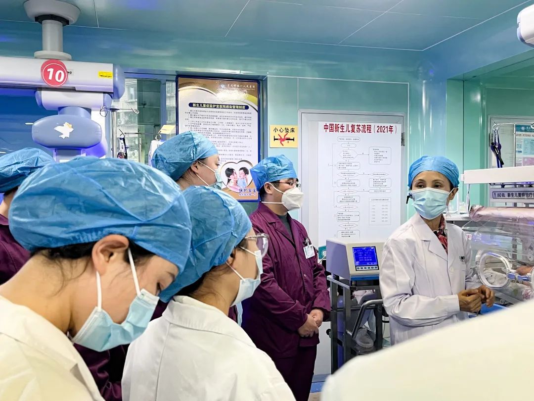 重医儿院新生儿科副主任、主任医师包蕾(右一)在新生儿科指导教学查房