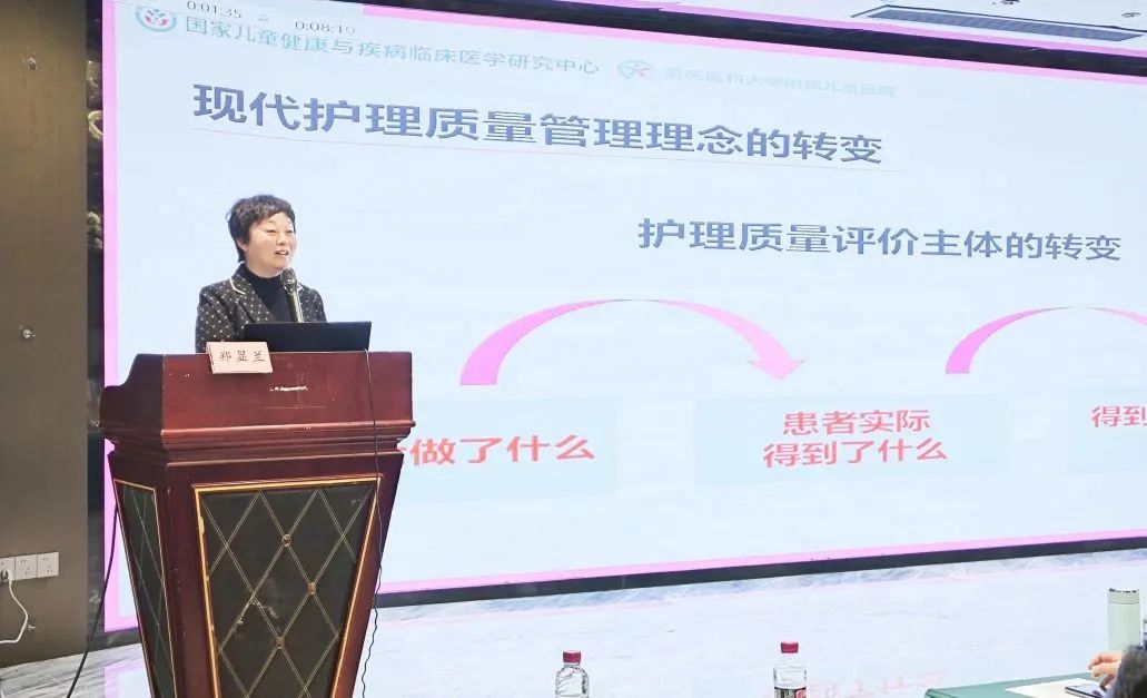 重医儿院护理部主任、主任护师郑显兰以“现代护理质量管理”为题进行讲授