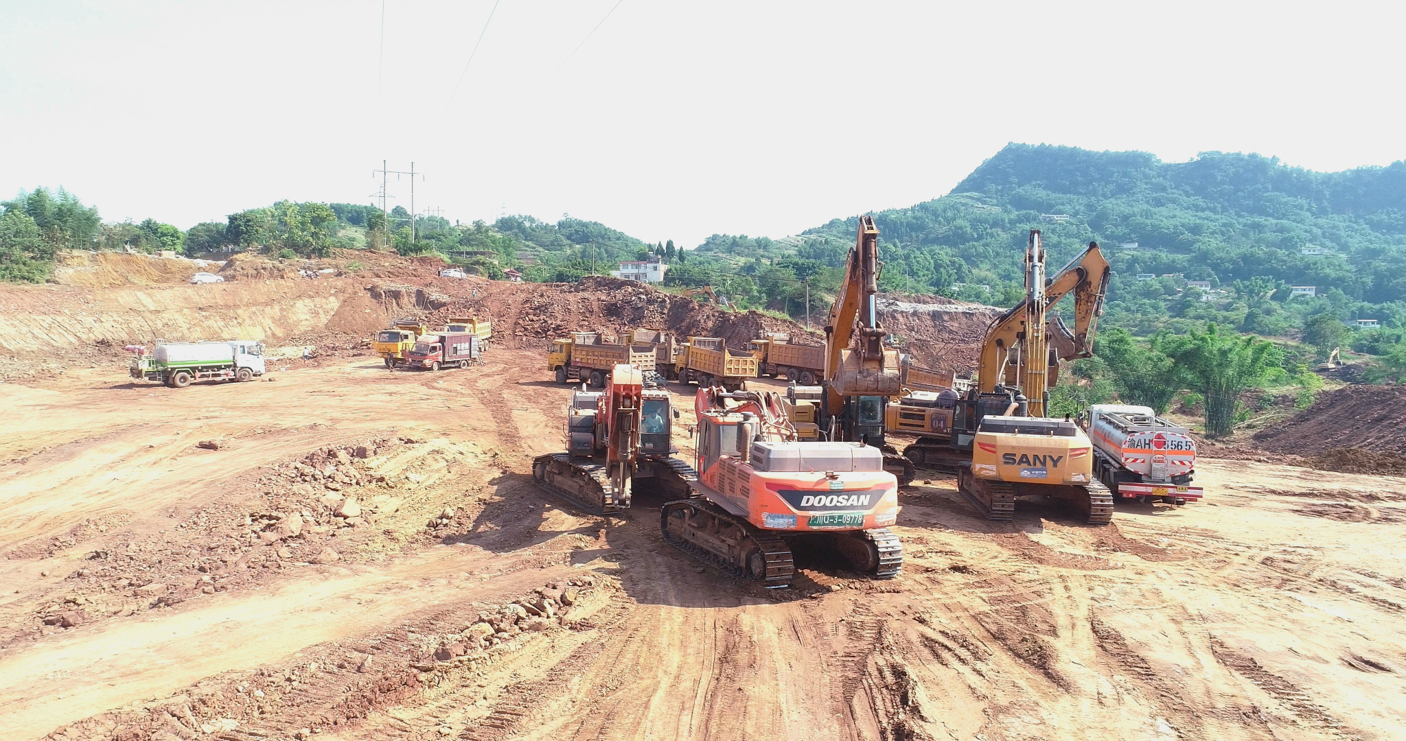 同样在园区内的宜宾资源循环利用基地建设项目施工现场也是一派繁忙景象。塔吊大臂挥舞,多台挖掘机轰鸣作业,工程车来回穿梭,数百名工人奋战在岗。