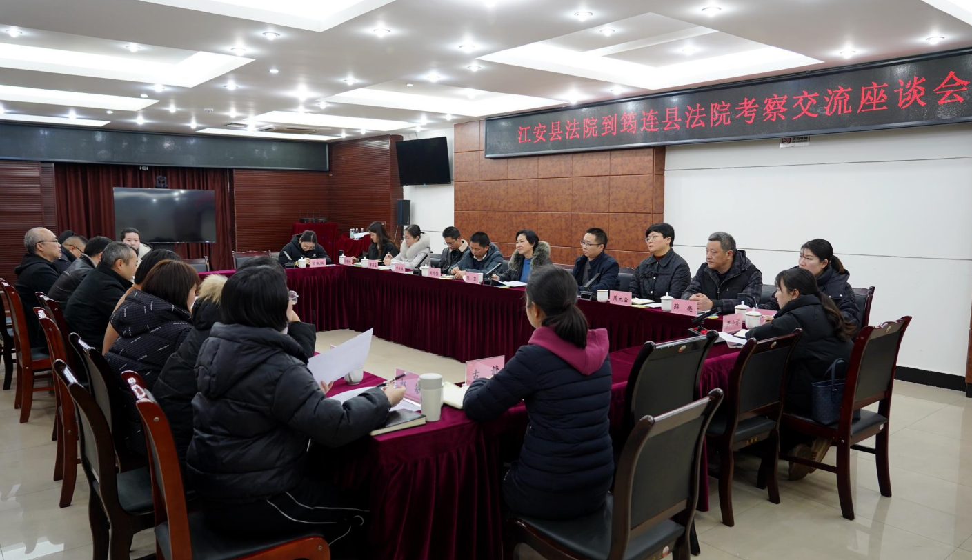 在座谈会上,胡浩院长对江安县法院一行表示诚挚欢迎,希望两地法院通过交流学习进一步增进友谊、共同进步,并详细介绍了筠连县和筠连县法院的基本情况。随后,两地法院与会人员重点围绕审判质效提升、案件评查、宣传调研、队伍建设等工作进行深入交流,就各自工作中存在的问题和困难进行了针对性探讨分析,共享工作经验做法。