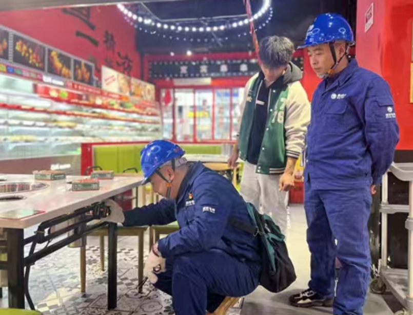 春节前夕,该公司组织用电检查班对火锅店、烧烤店内的线路、开关和涉电炊具等进行安全用电检查,科普安全用电常识,宣传“电能替代、低碳节能”。