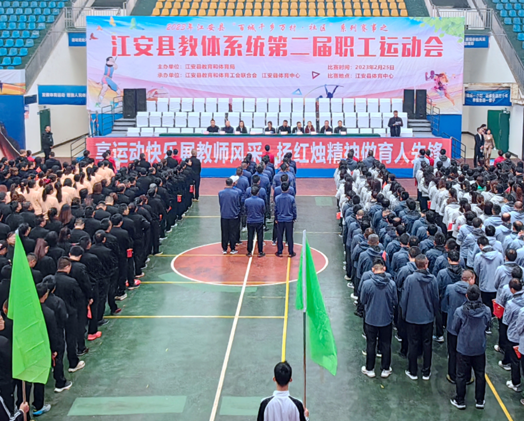 四川新闻网消息 为展示新时代教体系统干部职工的风采风貌,激发全县教师教书育人的情怀,2月25日,由江安县教育和体育局、江安县教育和体育工会联合会组织的2023年江安县“百城千乡万村•社区”系列赛事之江安县教体系统第二届职工运动会在县体育中心拉开帷幕。江安县人民政府副县长范晓莉出席并宣布运动会开幕。