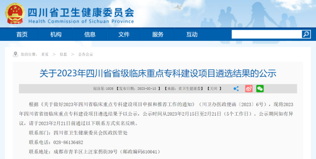 2023四川省临床重点专科:宜宾市一医院上榜3个