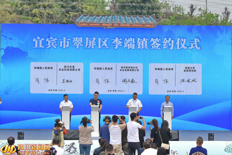 四川新闻网消息(周瑜原 陈忆 朱思雨 摄影报道)4月12日,宜宾市翠屏区李端镇第六届桑葚采摘节暨招商引资推介会在李端镇太公文化广场开幕。众多嘉宾游客纷纷前往现场,大家采桑果、品桑酒、游桑园,感受生态美景,尽享采摘乐趣。