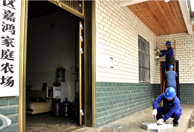 | 供电人员在嘉鸿家庭农场开展安全用电检修 |