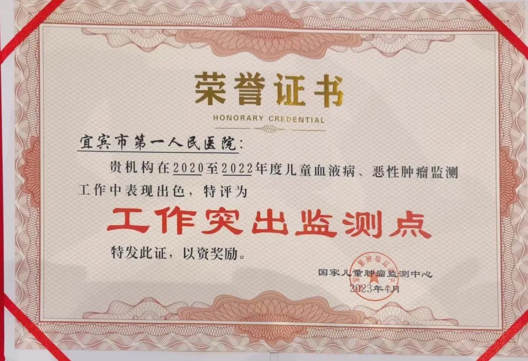 宜宾市第一人民医院获评“国家儿童肿瘤监测工作突出监测点”称号
