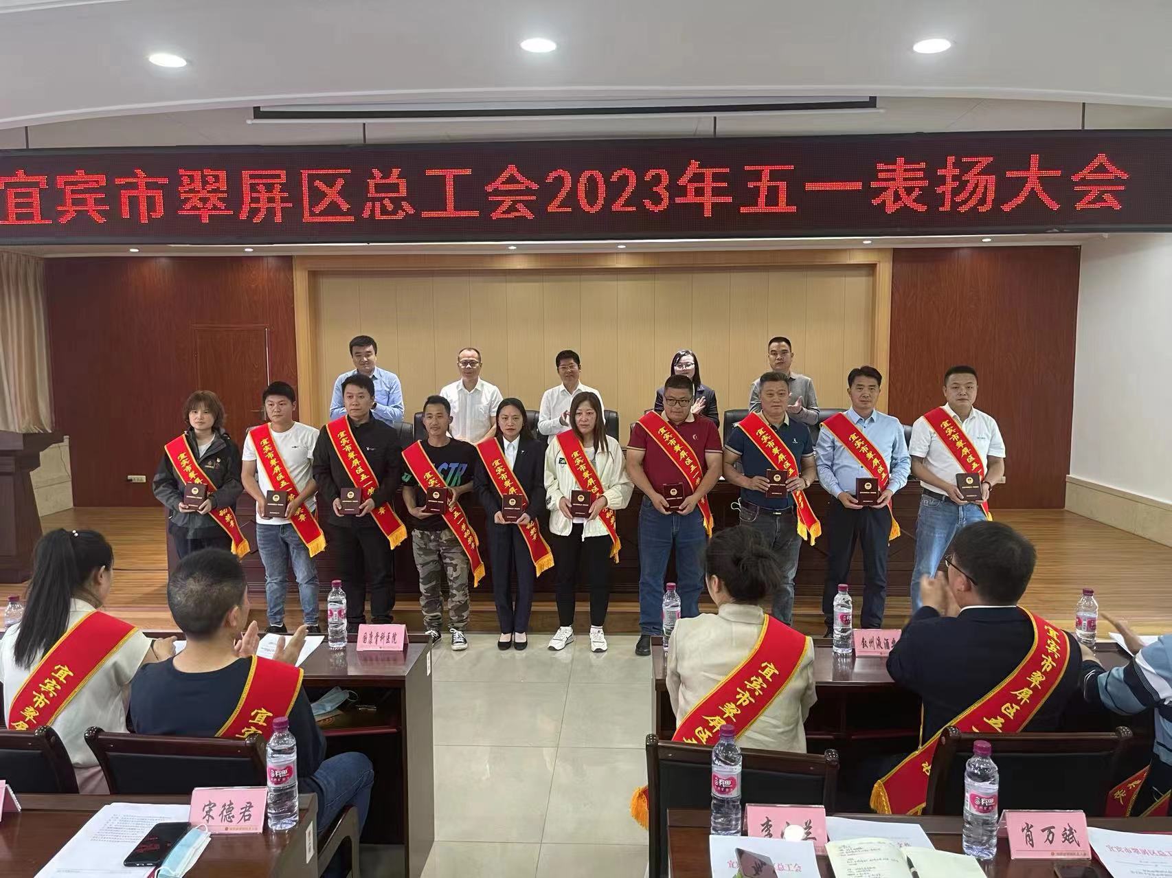 表扬大会上宣读了《宜宾市翠屏区总工会关于授予宜宾市翠屏区五一劳动奖和“工人先锋号”的通报》,宜宾国康骨科医院等5家单位获评“宜宾市翠屏区五一劳动奖状”,宋德君等10位同志获评“宜宾市翠屏区五一劳动奖章”,四川惊雷科技股份有限公司固定资产处等5个集体获评“宜宾市翠屏区工人先锋号”。
