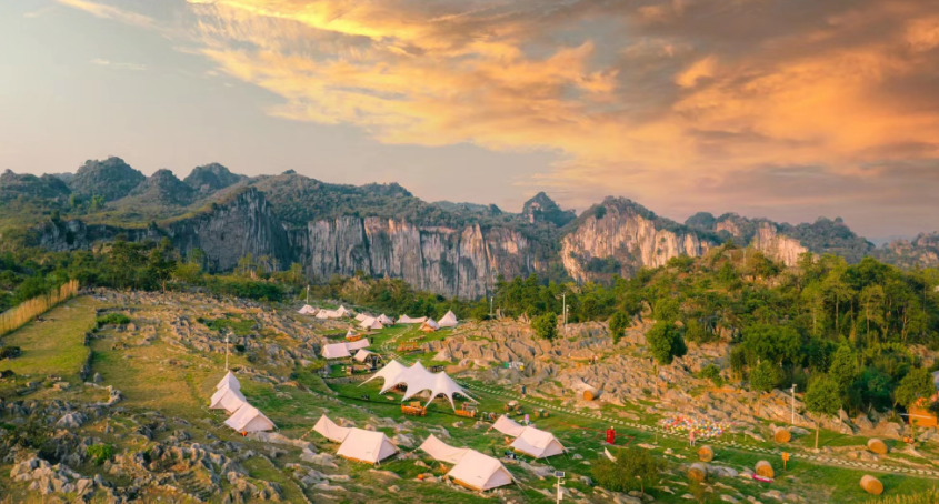 在刚刚过去的五一假期,兴文石海景区以“地质+运动”为主题,开展“大运无界、石海来袭”线上宣传活动,在线下举办了僰人实景演出、苗族长桌宴,户外运动挑战赛等丰富多彩的文化活动,受到游客好评。尤其举办的天坑露营节和春季研学旅行活动,更是因“文旅创新融合”被多家媒体关注报道。