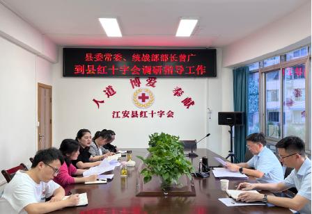四川新闻网消息 2023年5月15日下午,江安县委常委、统战部部长曾广一行到县红十字会调研指导工作,县红十字会常务副会长邱春茂,副会长、秘书长张庭等陪同调研;曾广实地查看县红十字会办公室、物资储备库等建设情况,并听取了工作汇报。