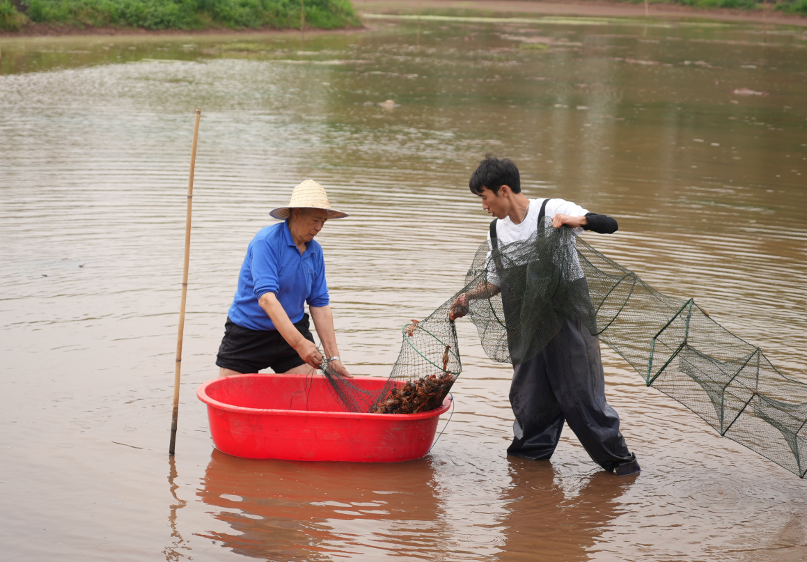 站在田垄上远眺龙虾基地,一望无际的虾田,波光潋滟,刚插好的秧苗叶子,迎风摇曳。“水稻+小龙虾”这个奇妙组合,不仅盘活了土地资源,促进农业增效增收,也让部分村民实现了家门口就业。在张骑眼里,这片土地不再只是普通的农田,即将成为稻香虾肥的“聚宝盆”。