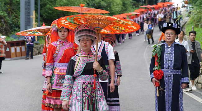 四川新闻网消息 5月20日,由兴文县文旅发展投资集团有限责任公司和兴文县苗族文化促进会主办的“秀美苗乡•情定仙峰”兴文苗族集体婚礼活动圆满结束。52对新人在来宾的祝福下,完美完成了苗族传统婚礼仪式。
