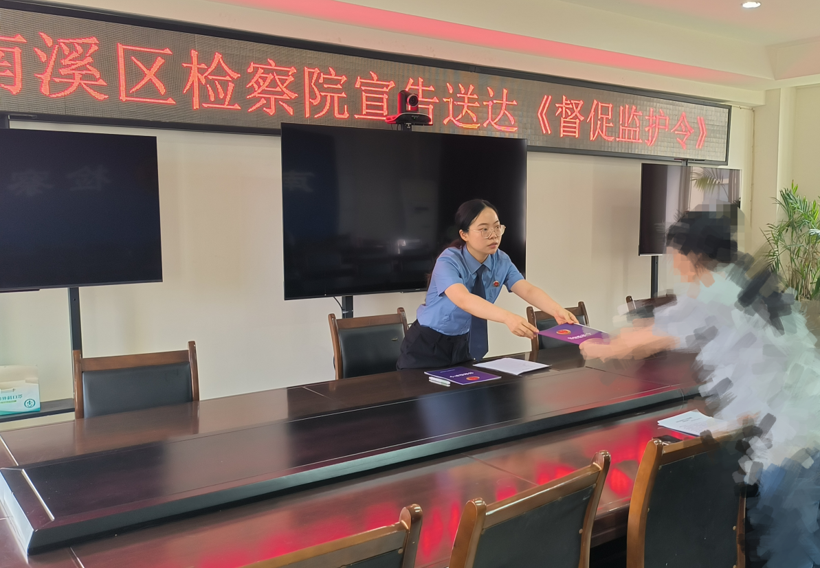 为督促该两名未成年人监护人积极正确履行监护职责,解决其监管不力的问题,南溪区检察院依据《未成年人保护法》《预防未成年人犯罪法》《家庭教育促进法》中的相关规定,制发两份《督促监护令》,并以不公开形式宣告送达。在宣告送达中,未检检察官宣读了《督促监护令》,根据涉案未成年人的涉案原因、性格特点及存在的家庭问题,分别从亲子沟通、教育方式、监护管教等方面提出具体的督促监护建议,并现场同步开展家庭教育指导。