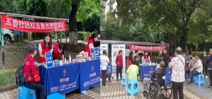 为普及牙病预防知识,帮助社区居民了解口腔健康常识,发现和预防口腔疾病,五香“红五星”志愿服务队制定口腔义诊活动,由宜宾一家口腔医院认领在吉祥名都小区开展。