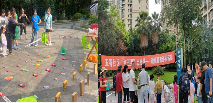 由辖区社会组织宜宾薇亚教育认领的游园活动在鑫悦湾小区开展。家长和孩子们踊跃参与具有初夏特色的联欢活动,让日常繁忙的父母们能停下脚步,给予孩子一场充满欢乐和趣味的陪伴。