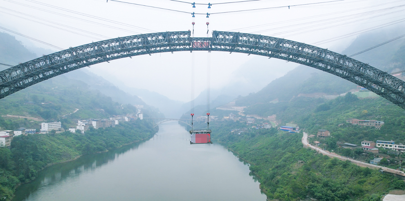 在施工现场,随着最后一块长15米、重81.6吨的拱肋节段吊装到位,再经过精准的安装之后,这座位于宜宾市屏山县新市镇的西宁河特大桥顺利实现合龙。