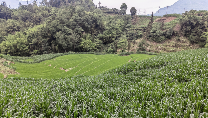 (图为村民胡权的水稻和部分玉米)