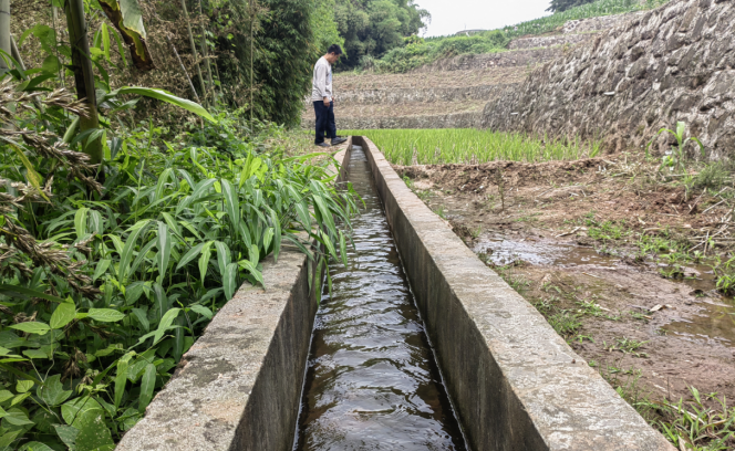 (图为安全村提灌站引水沟渠正在引水)