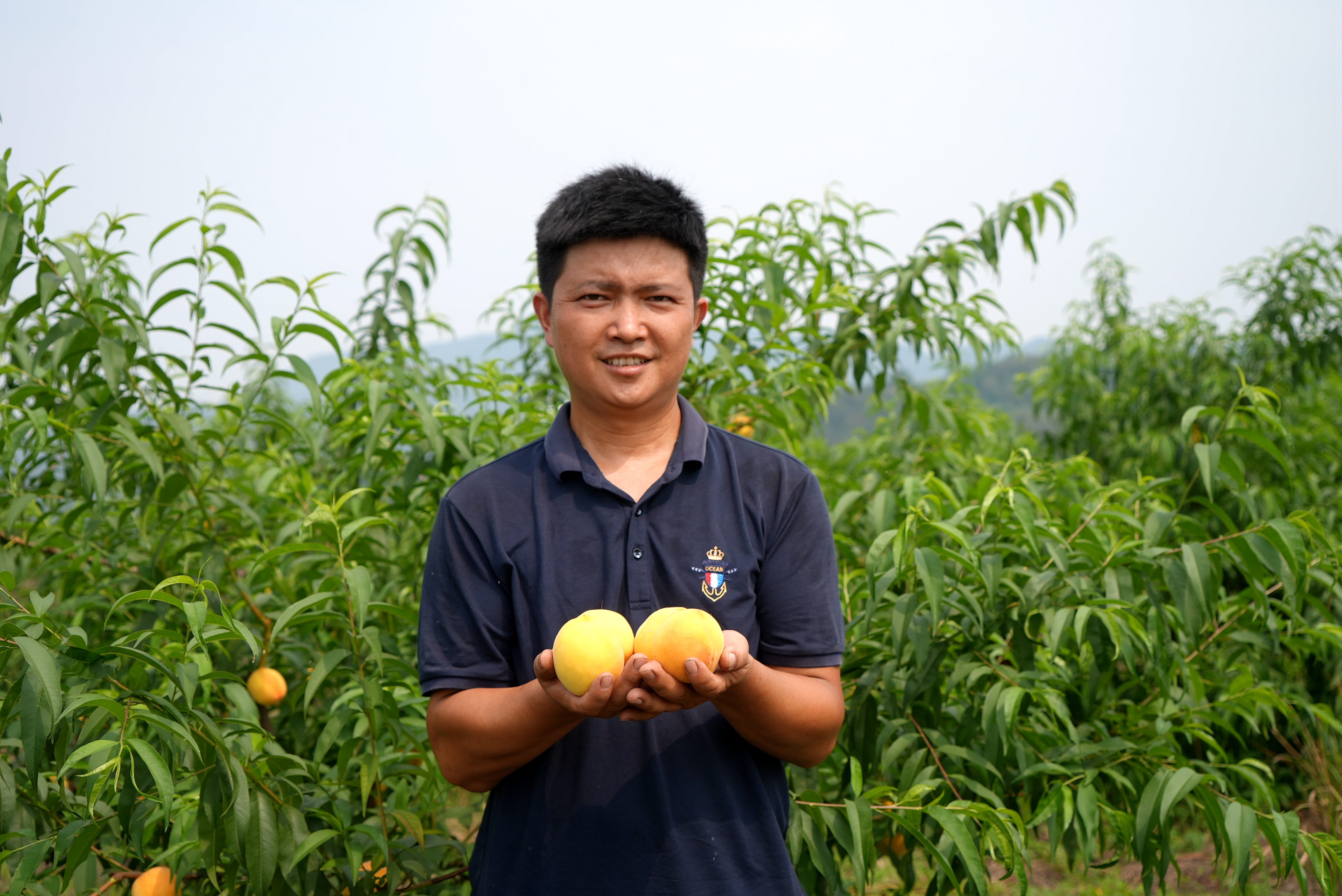 2019年,在外务工的宋万林选择回乡创业,流转了村里200余亩荒山种植黄桃,通过多年的细心经营,如今荒山变果园,基地规模达到了400余亩。由于地处山顶,光照充足,加上管理精细,这里的黄桃不仅个头大而且口感脆甜,颇受市场欢迎。