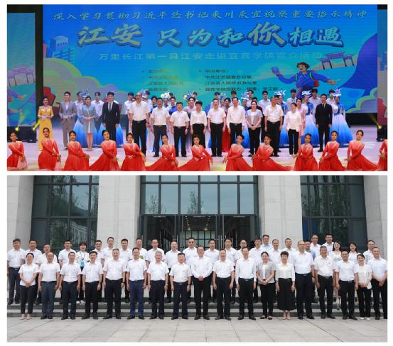 四川新闻网消息 “我来,只为和你相遇!”6月11日,由中共江安县委、江安县人民政府、宜宾学院共同主办的万里长江第一县江安走进宜宾学院宣介活动在宜宾学院临港校区举行。宜宾学院党委书记蔡乐才,宜宾学院党委副书记、院长杜正聪,县委书记李强,县委副书记、县长何益伟,县人大常委会主任蒋龙珍、县政协主席钟军,县委副书记曹汇等县四家班子在家领导出席活动。