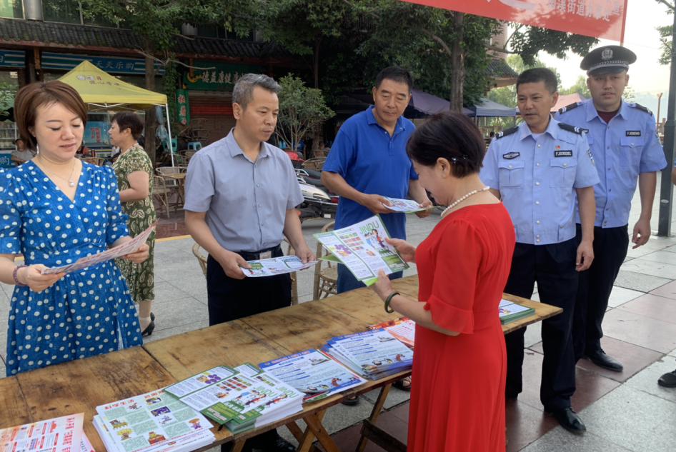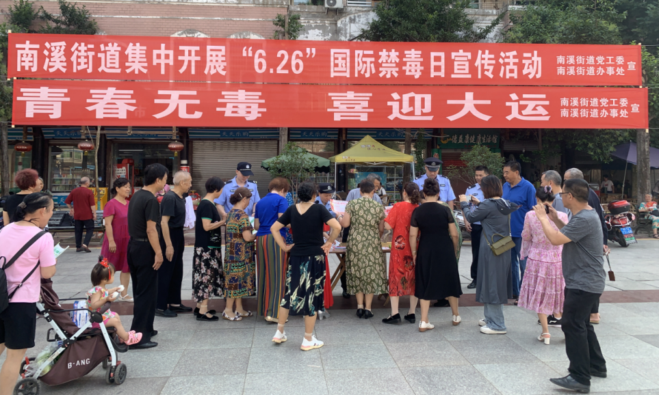 四川新闻网消息 6月26日上午,宜宾南溪区南溪街道联合派出所、司法所在南溪街道滨江广场开展“青春无毒 喜迎大运”宣传活动。