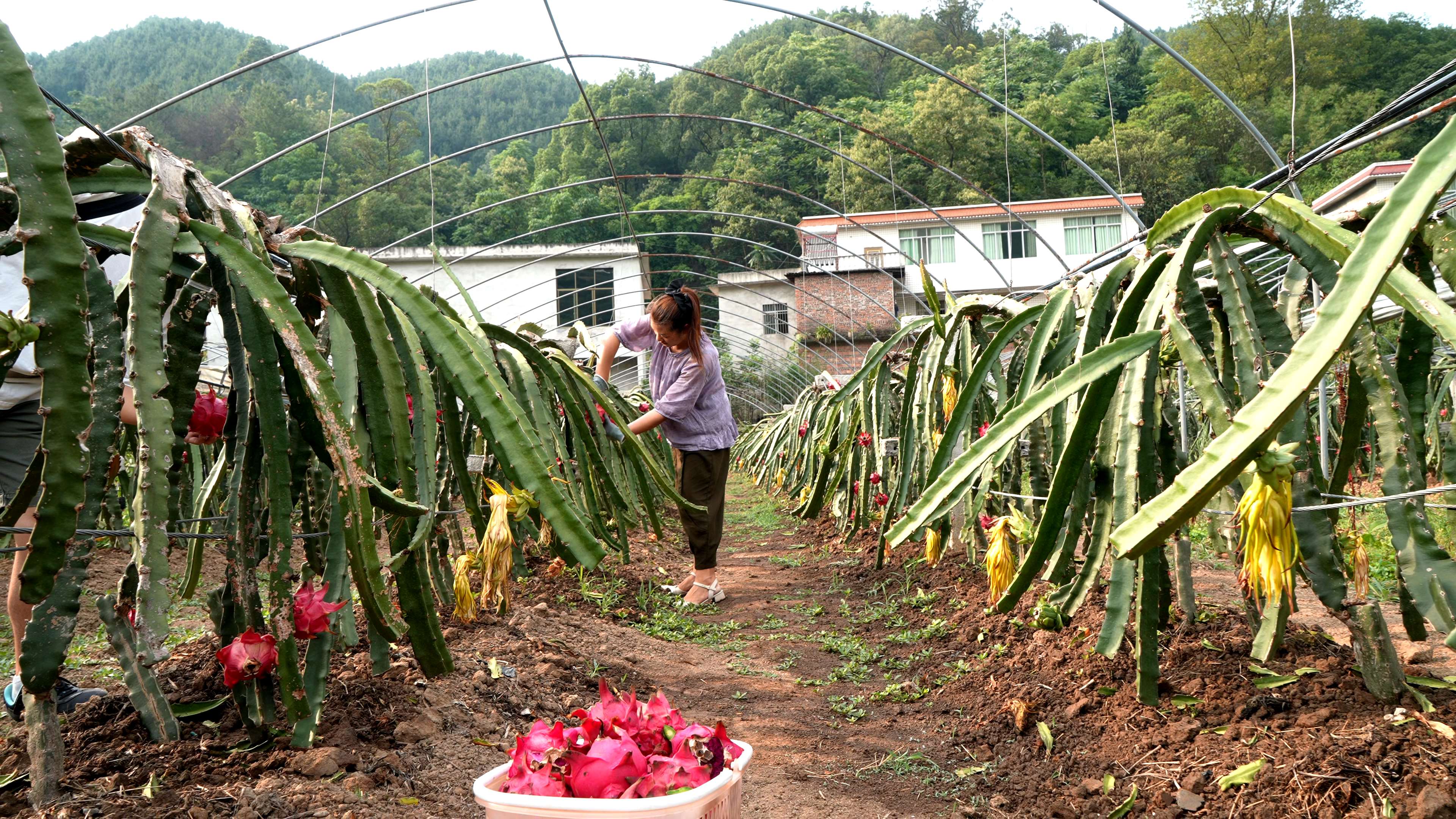 “基地的火龙果一年可以采摘6批次,通过预售+订单的销售模式,首批成熟的4000多斤火龙果已销售一空,现在正在采摘第二批,预计产量在3000斤左右。”钟福英介绍,基地里的火龙果都是订单销售,成熟度达标后才会进行采摘,所以口感更加软糯香甜。
