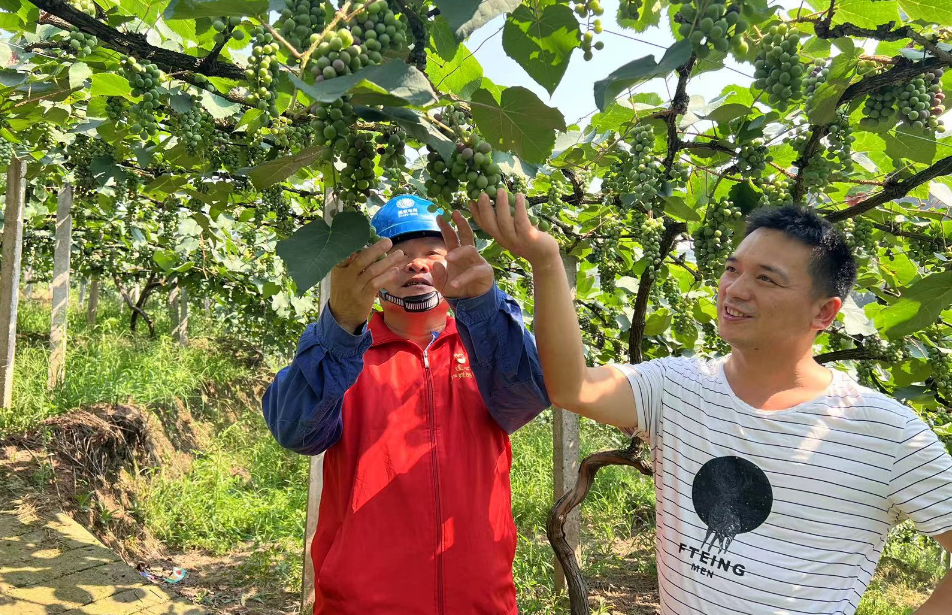 四川新闻网消息(周瑜原 杨耘鸥)近日,在宜宾市叙州区大滩村四和组的紫秋葡萄种植采摘基地里,葡萄架上的果子长势喜人。“今年天干气温高,雨水少,多亏了供电公司保障我们葡萄园区泵机浇水灌溉用电。”村支书狄少维不停对国网宜宾市叙州供电公司(安边供电所)的工作人员表示感谢。
