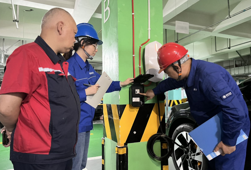四川新闻网消息(周瑜原 杨耘鸥)“7号楼新装充电桩分支箱合闸成功,357号车位充电桩电表脉冲灯正常,已开始充电!”7月26日,国网宜宾市叙州供电公司(文中简称“叙州公司”)工作人员在宜宾丽雅龙城小区开展新能源充电桩配套设施扩建工程,同时对小区内的新能源充电桩进行义务“体检”检查,检查充电桩运行情况。