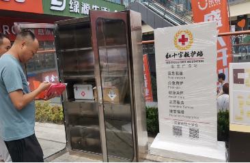 据悉,除去2022年在江安县体育中心安装的1台AED,新购置的5台AED已经投放到人员密集的五个公共场所,这五个场所分别是:竹都广场、剧荟广场、江安中学、客运中心、长江竹岛。每到一处,技术人员在确定“救命神器”安装位置后,依次做好盒子安装、设备调试。同步配套打造10个红十字微型救护站,站内配备有急救包、绷带、氧气袋等相关急救设备及常用药品,在突发意外事件时,可为广大市民提供创伤包扎、急救等服务。