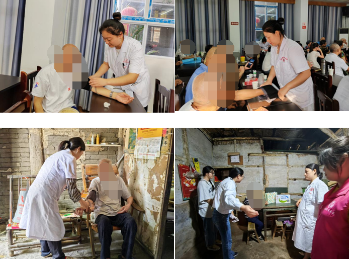 随后,卫生院医生为老人提供量血压、测血糖、测血脂等健康义诊服务,针对不同老人所出现的身体状况进行记录,耐心解答其各种咨询并提出疾病治疗建议,为老人提供专项健康知识指导。
