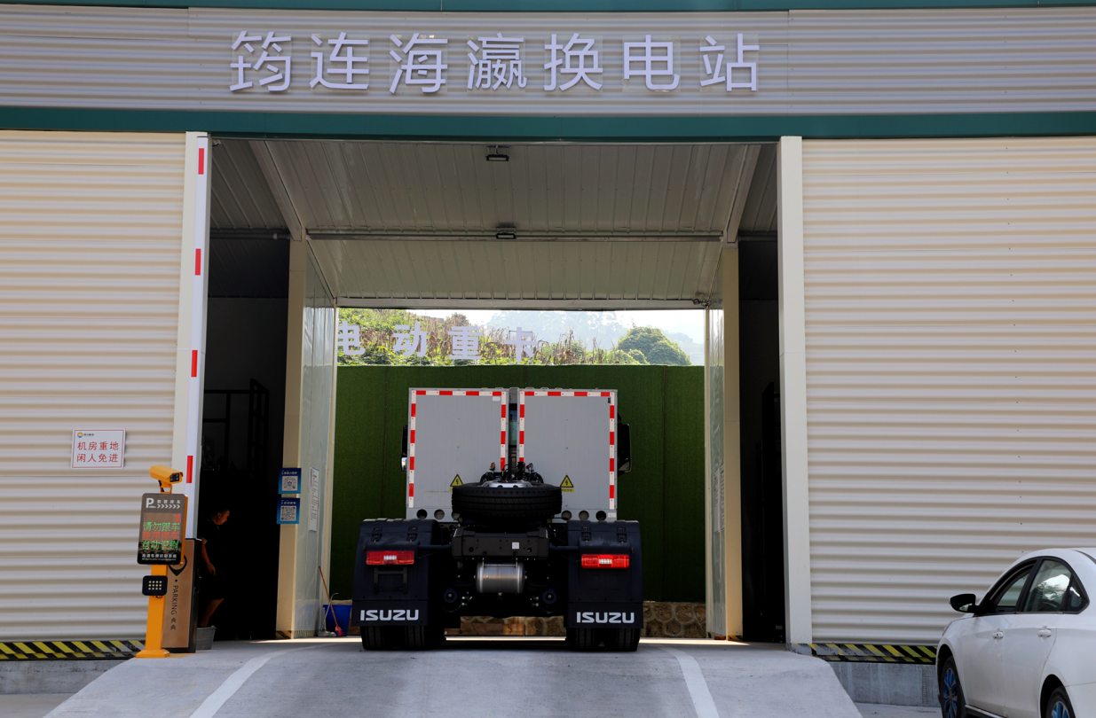 四川新闻网消息 在筠连县海瀛重卡换电站内,一辆新能源重卡开进来后,司机下车,拿出手机扫描二维码,进入换电小程序,就开始了智能换电,短短4至5分钟,重卡就“满血复活”了。