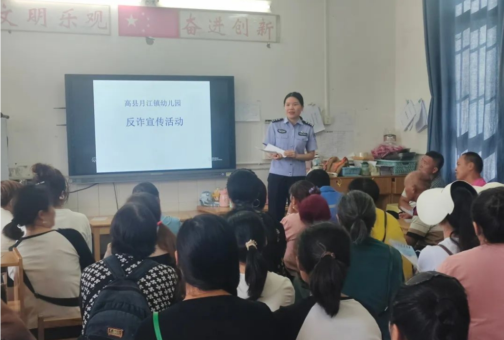 开设家长专题课堂。月江派出所民警借助幼儿园家长会,给100余名学生家长上了一堂反诈公开课,专题宣讲防范电信网络诈骗相关知识,希望家长们都能够有效地识骗防骗。为了能让家长们有更深刻的理解,在发放宣传手册和分享真实案例的过程中,民警还通过发生在身边的诈骗案件来警醒大家,让家长们更加清晰地认识到防范电信诈骗的紧迫性,进而提高自身的防骗能力。