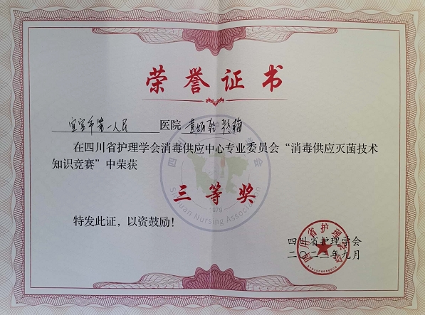 宜宾市第一人民医院在四川省护理学会消毒供应学术年会灭菌技术知识竞赛中荣获三等奖