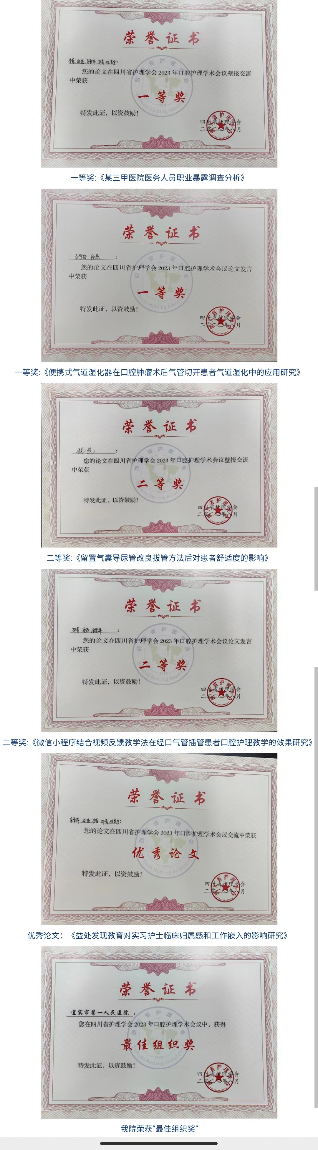 宜宾市第一人民医院在四川省口腔护理学术会中荣获多项荣誉