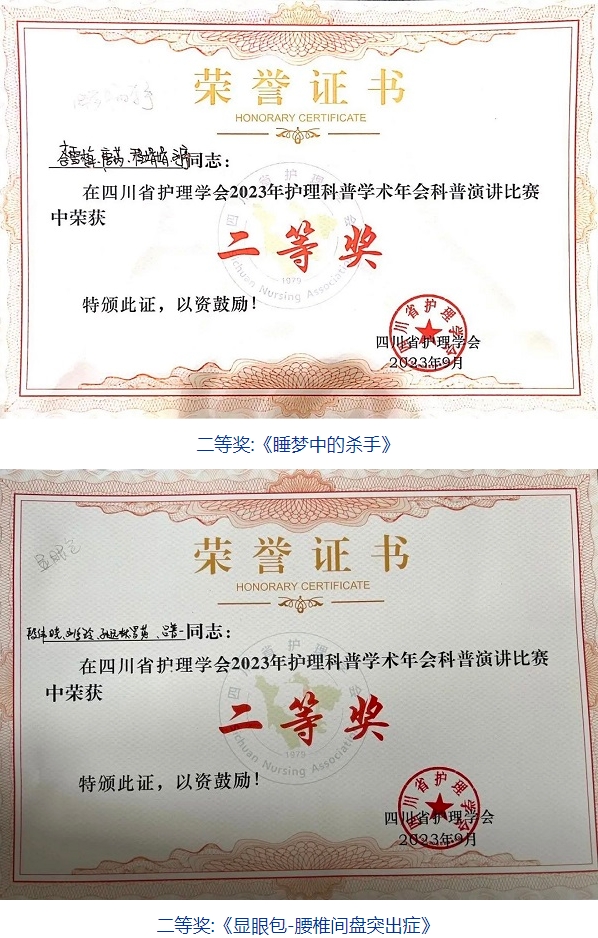 宜宾市第一人民医院在四川省护理科普学术年会中取得两个“二等奖”