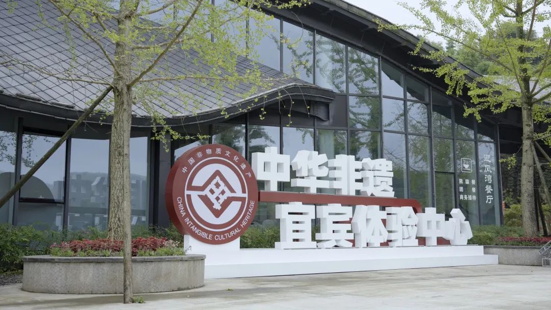 中华非遗·宜宾体验中心是依照竹叶的外形进行设计,内部划分为宜宾非遗文化代表性名录展示区、非遗自选商城、鹿鸣茶体验区、非遗酒类展示区、手作体验区、休息区等6大区域,现场立体展示了“五粮液酒传统酿造技艺、江安竹簧、大坝高装、苗族蜡染技艺”等四项国家级非遗项目,“珙县麦秆画、宜宾燃面、女子踩桥、川南请春酒”等10项省市级非遗项目,会场还设置了非遗美食品鉴区,“宜宾燃面、双河凉糕、南溪豆腐干、李庄白肉”一应俱全,不仅可以饱眼福,还能饱口福,这里对宜宾的非物质文化遗产进行了全方位的收集与展现,是宜宾唯一一个非遗文化的展示场馆。