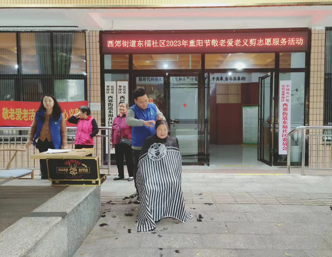 东福社区携手西郊卫生服务中心复元之家和宜宾市市级机关老年健身协会水务分会开展了以“重阳九九.幸福伴你乐悠悠”为主题的一系列文明实践主题活动。包括节目表演、免费理发、爱心午餐等实践活动以及防艾、禁毒、健康知识、医疗政策、文明行动倡议等一系列宣传活动。用各种花式服务暖心迎重阳,营造幸福生活的良好氛围。