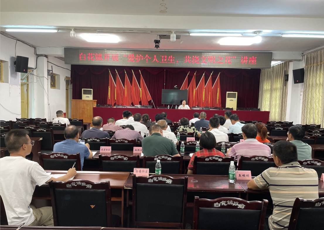 2023年9月1日,白花镇召集37个村(社区)代表集中开展“爱护个人卫生,共浇文明之花”讲座。讲座开始之前,由白花镇宣传委员郑丽苹同志给大家讲解开展本次讲座的目的和重要性。她强调,“个人卫生管理是省级爱国卫生镇建设的重要内容,是需要全社会共同参与的事业,好的卫生习惯不仅影响到个人的身体健康,还会提升家庭的文明意识,进一步涵养全镇的文明乡风。”