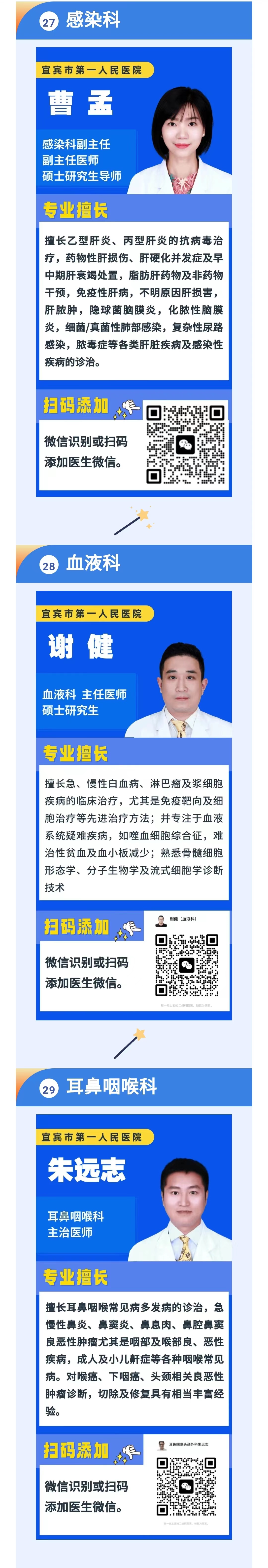 四川新闻网消息 12月1日,宜宾市第一人民医院已开通健康管理专家线上咨询服务。市民只需通过微信扫描二维码,就可以添加相应专家的微信,通过私信与专家进行一对一交流,获取疾病咨询和相关治疗信息,咨询时间:19:00——21:00。