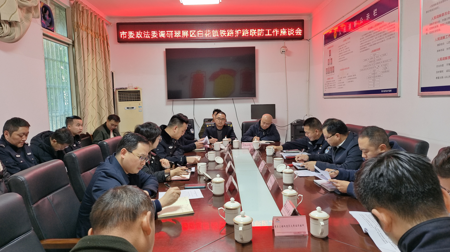 座谈会上,调研组听取了白花镇对铁路护路联防工作开展情况、当前存在问题及下一步工作打算的汇报。分析了当前铁路护路联防工作面临的形势,同时指出工作中存在的问题和短板,完善机制、落实考核、理清职责、加强宣传及25个下穿道路预施工方案,保证沿线居民出行安全。