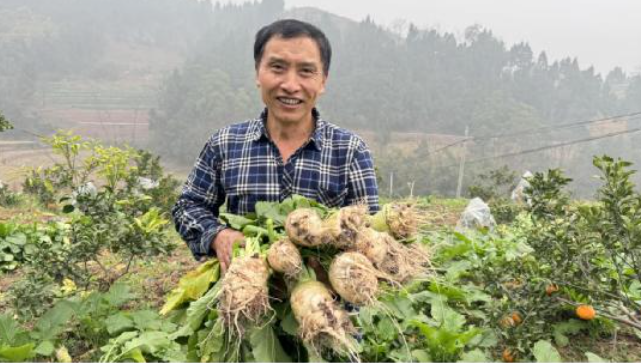 “我们的土地平时是闲置起来的,村上建议我们种大头菜,没想到这个效果这么好,产量也高。我2023年种植了4吨左右大头菜,收入应该在4000元钱以上。”高场镇富荣村村民陈代均表示,大头菜见效快,收益高,今年将继续种植。