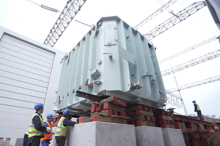 “第一台主变抵达了作业现场,标志着宜宾北变电站新建工程即将全面转入电气设备安装阶段。”国网宜宾供电公司宜宾北500千伏输变电工程建设指挥部副指挥长杨九文介绍道,整个作业进度都在预控范围内,项目通过增加工人数量、优化工序流程等形式,将工期压缩至一年左右,预计将于今年6月投产运行。