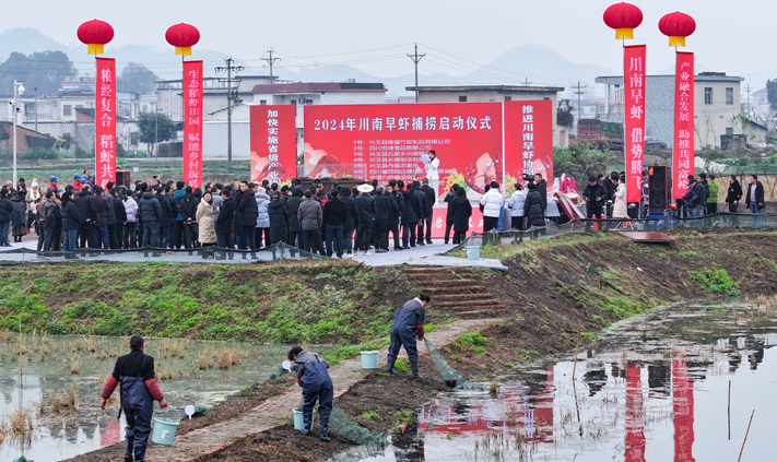四川新闻网消息 1月25日,2024年和美乡村文化节•川南早虾捕捞启动仪式在五星镇金钟村火热举行。本次活动对大力发展“早虾”,打响“川南早虾”品牌,抢占窗口市场具有重要意义。